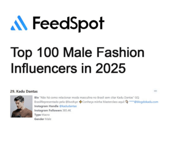 Influenciador e especialista em imagem com alcance internacional, Kadu Dantas soma parcerias de peso com marcas como Louis Vuitton, Armani, Dior, Gaultier, Montblanc e Lacoste.